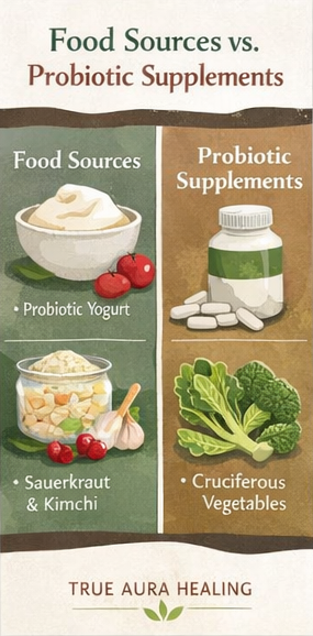 Probiotic yogurt and fermented foods can provide natural sources of beneficial bacteria that support digestive health. Including cruciferous vegetables like broccoli, cabbage, and Brussels sprouts can help nourish beneficial microbes through fiber and plant compounds. While food sources provide valuable nutrients, a probiotic supplement may offer more targeted support depending on your needs. Combining both approaches can create a more balanced strategy for supporting gut health. Building meals around nutrient-dense foods can help maintain long-term digestive balance.