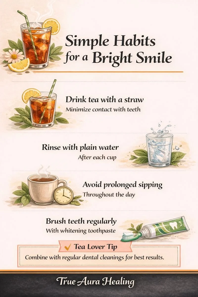 Love tea but want a brighter smile? These easy daily habits help prevent tea stains and teeth stains naturally. Learn why rinsing with plain water, avoiding prolonged sipping, and regular brushing with whitening toothpaste can make a big difference. Simple tips you can start today for healthier, whiter teeth.